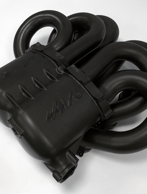 A monolithic intake plenum and manifold system 3D-printed in Windform SP through Selective Laser Sintering improves sealing reliability and structural stability for Alpine’s hydrogen V6 engine